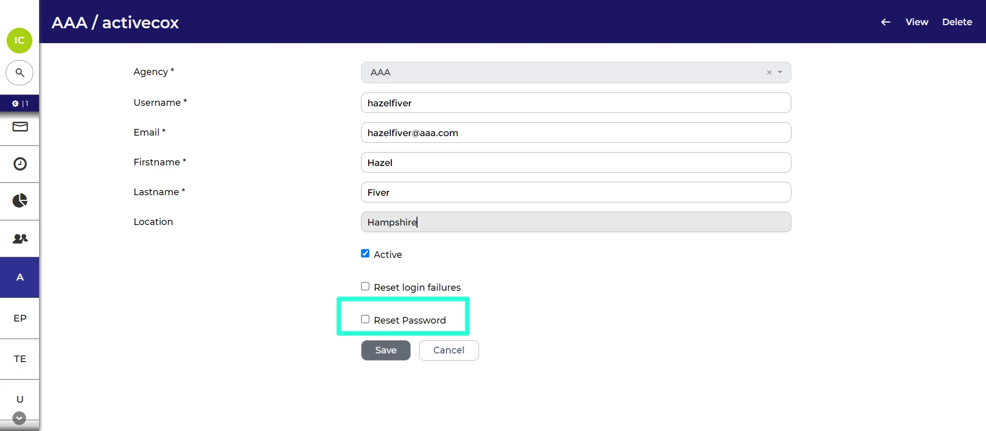 - Select the row of the recruitment agent who needs a password reset (you can use the filter at the top of the list to find them quickly).