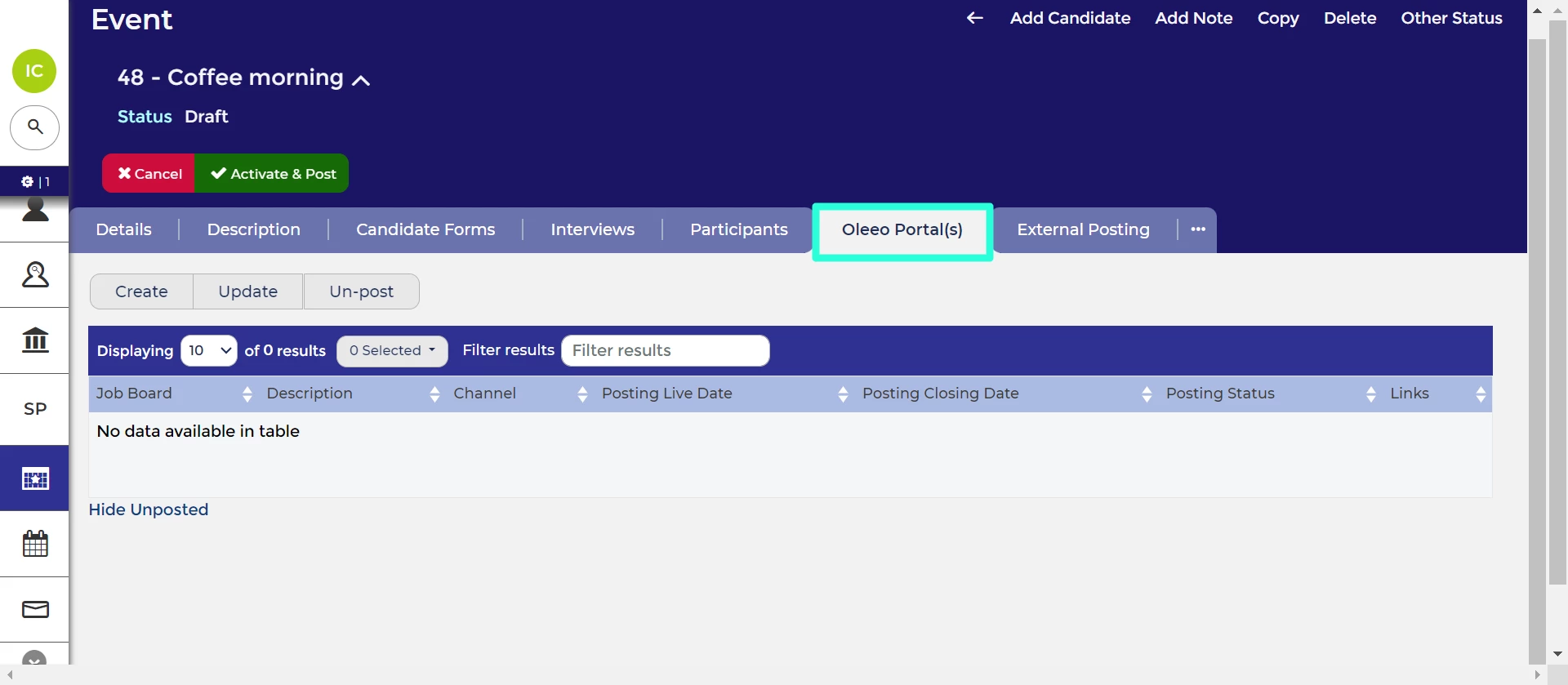 - Navigate to the 'Oleeo Portal(s)' tab (also known as 'Posting').