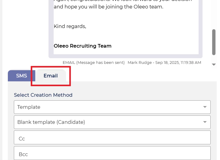 Direct Communication, Simplified: Quickly send personalised emails to candidates without leaving your workflow.