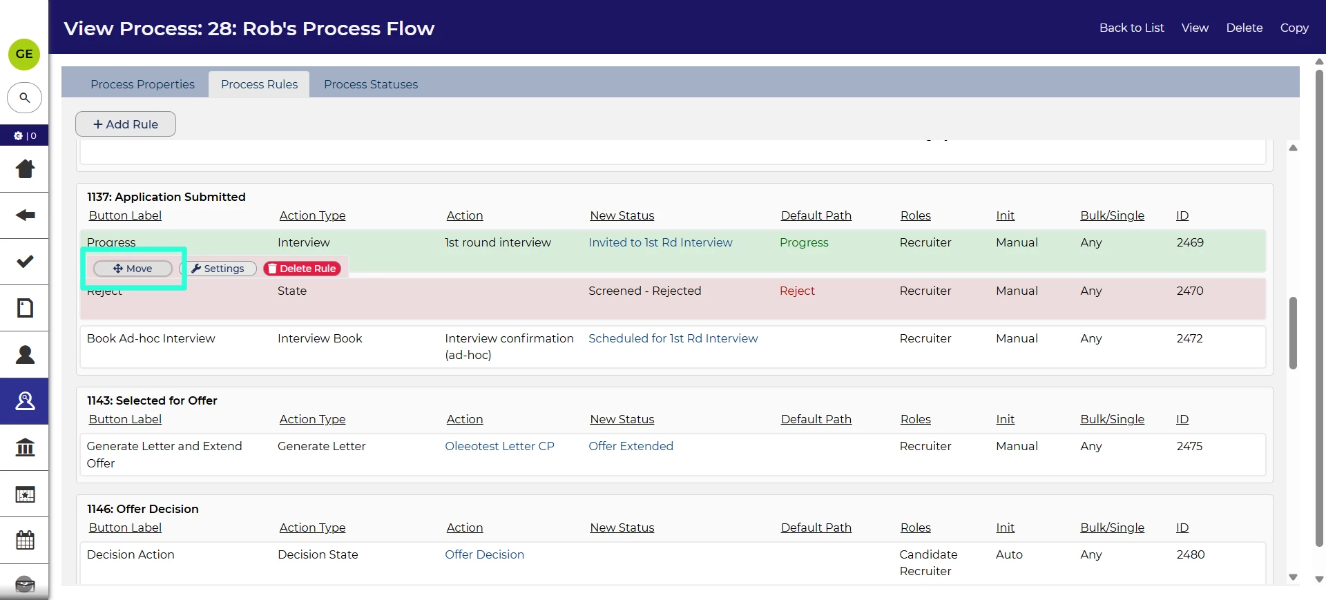 When you hover over a process rule, you’ll see a new option to “Move”. You can click and drag this to order the process rules in the status.