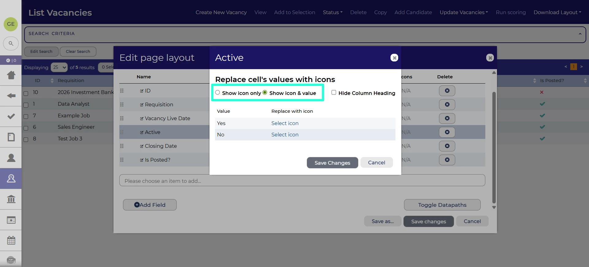 When adding icons to a Table Layout, the options for showing just the icon or the icon with the value are now programmatically grouped so that screen reader users can understand their relative connection.