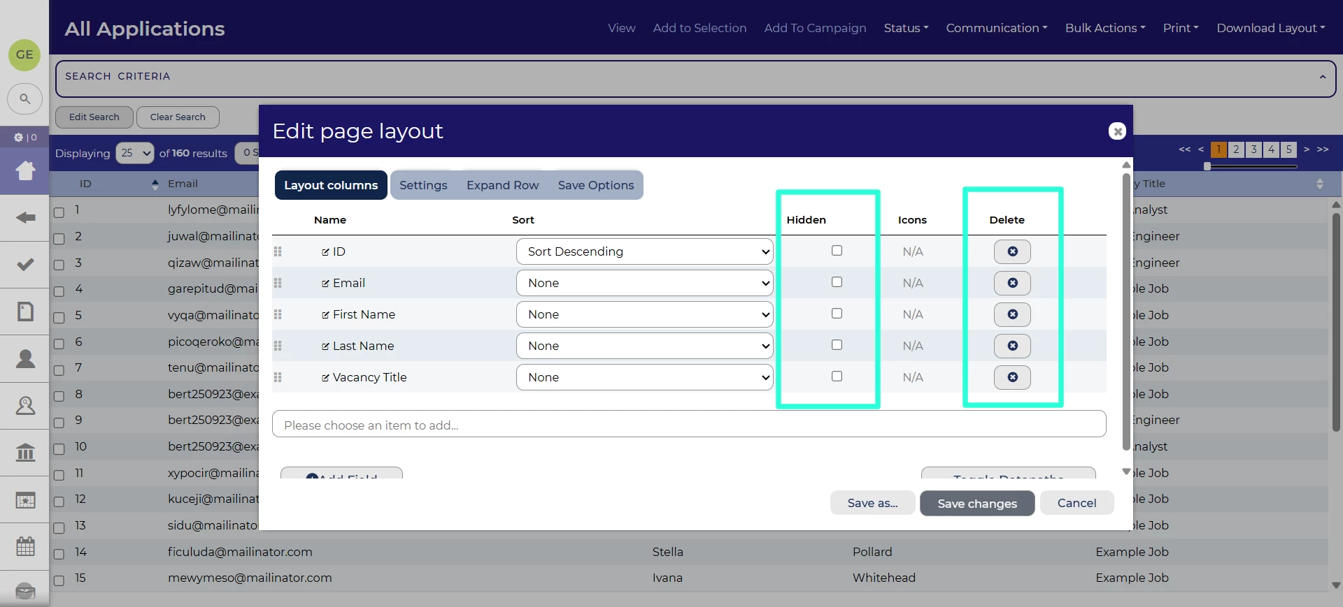 When editing the list of fields in a Table Layout, the “Hidden” and “Delete” options are individually labelled for screen reader users so that they can correctly interpret their purpose.