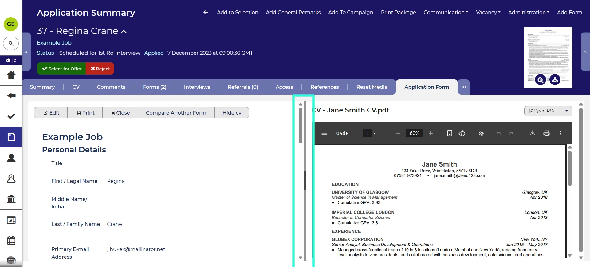 We’ve improved the contrast of the vertical separator used when comparing two application forms, or an application form and CV.