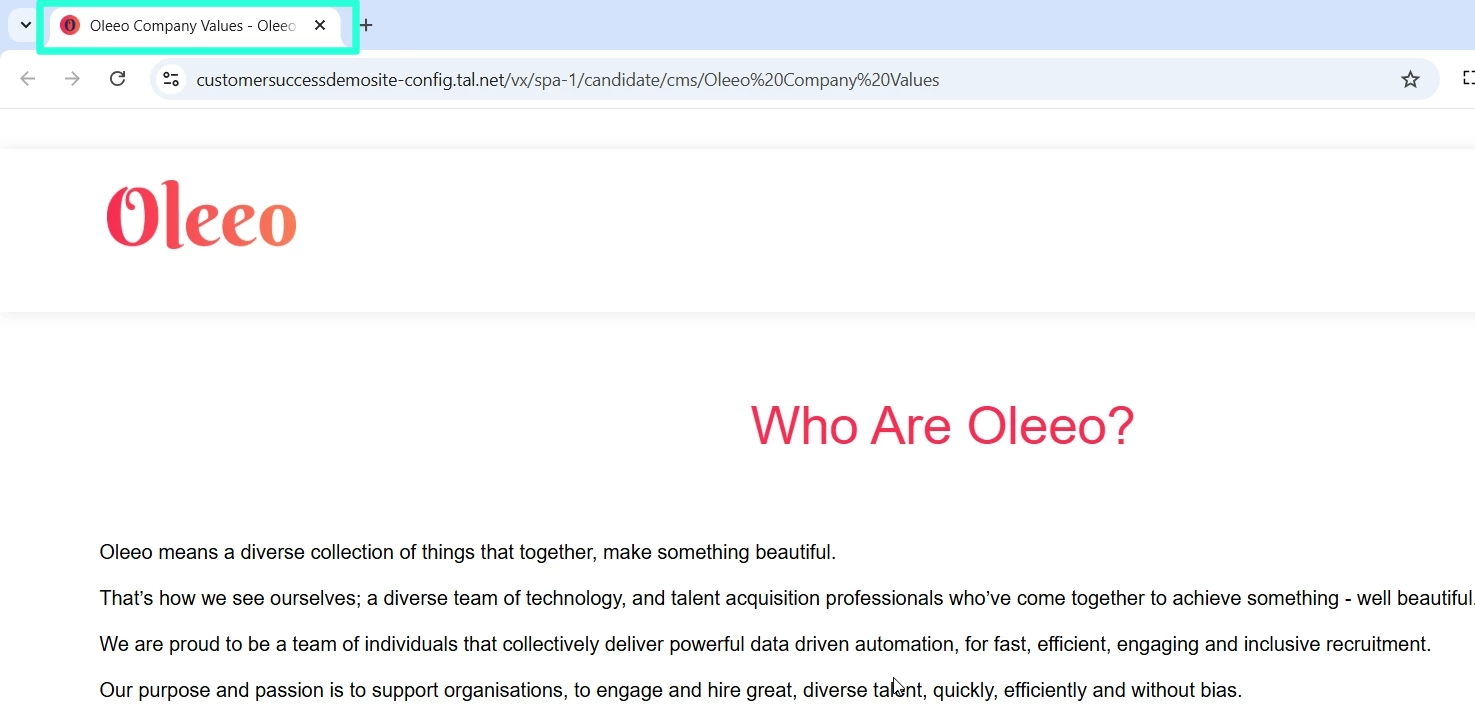 For application centre pages created through the Talent Engagement functionality, the page title defined in Oleeo Recruit is now shown to candidates in browser tabs.