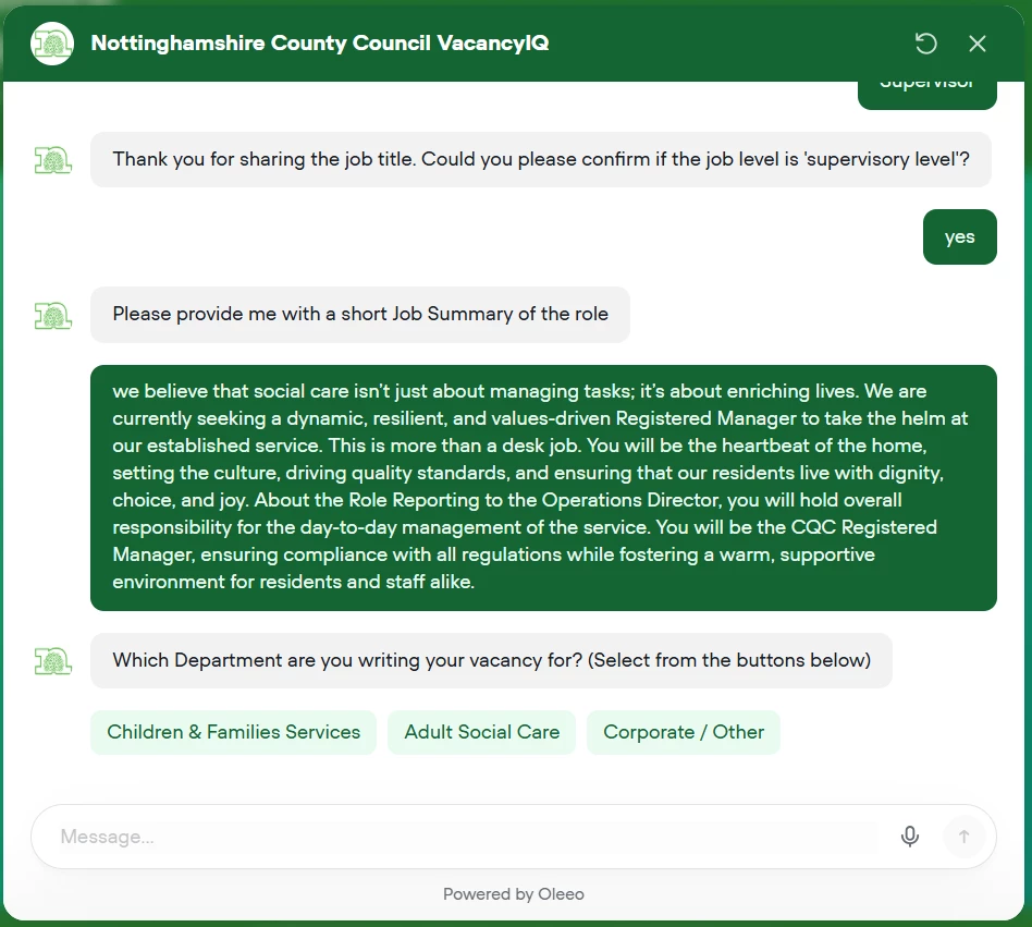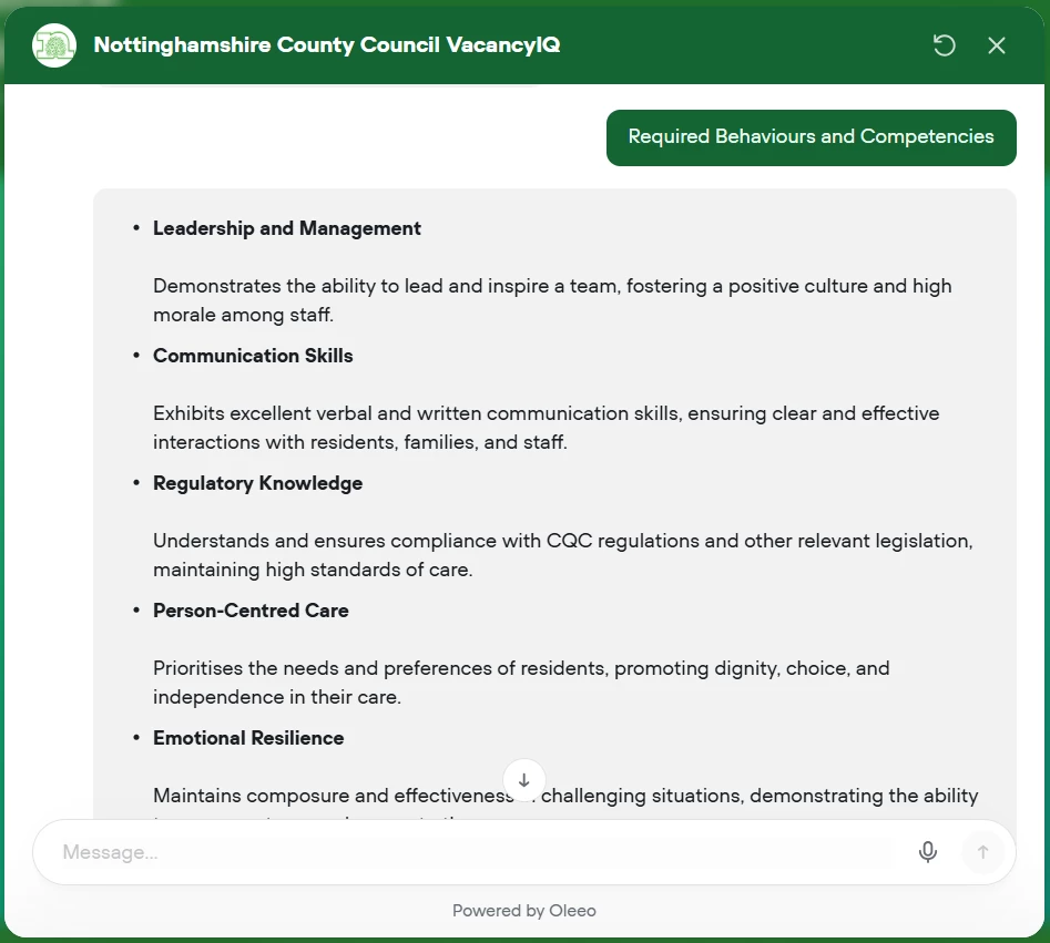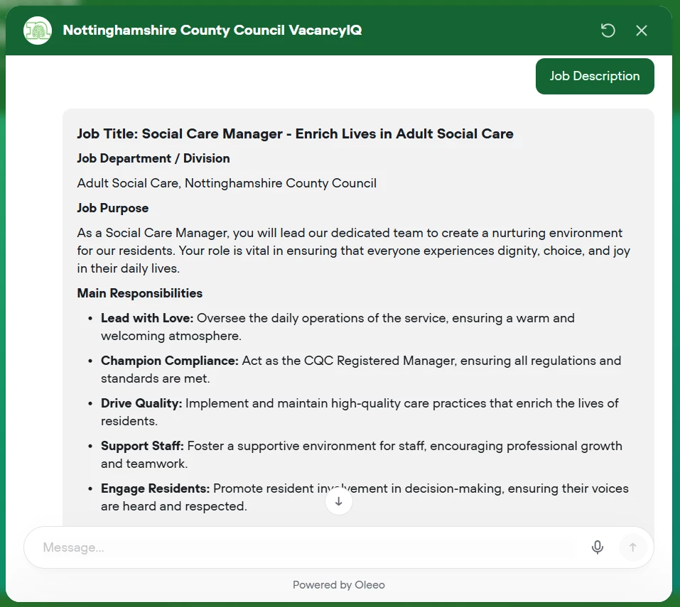 VacancyIQ can be trained to provide content specific to your organisational departments or specific job types.