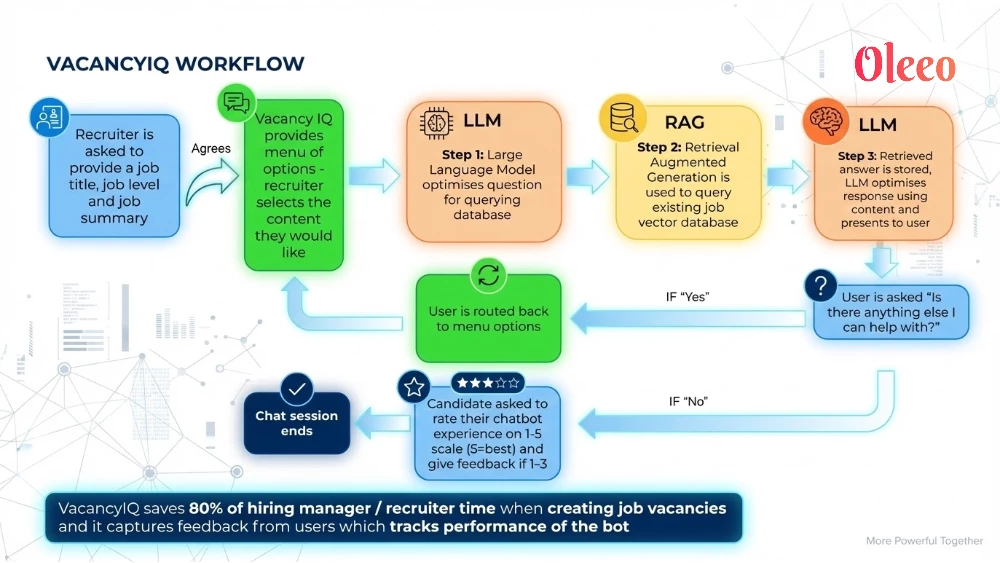 - Initial Configuration & Data Ingestion: Oleeo integrates VacancyIQ with your system to securely ingest your past successful vacancies, which forms the foundation for the AI’s learning.