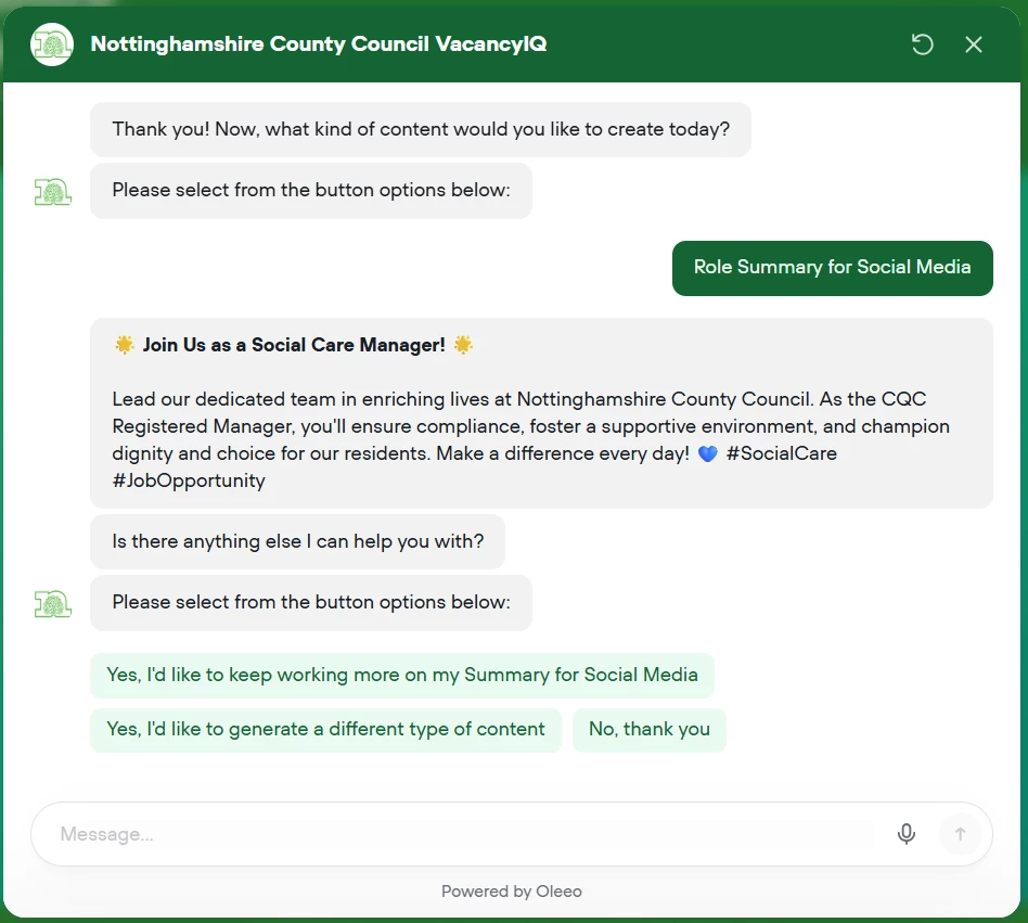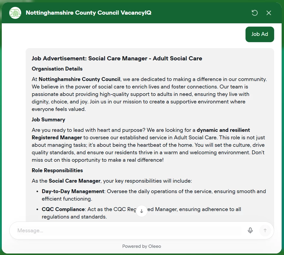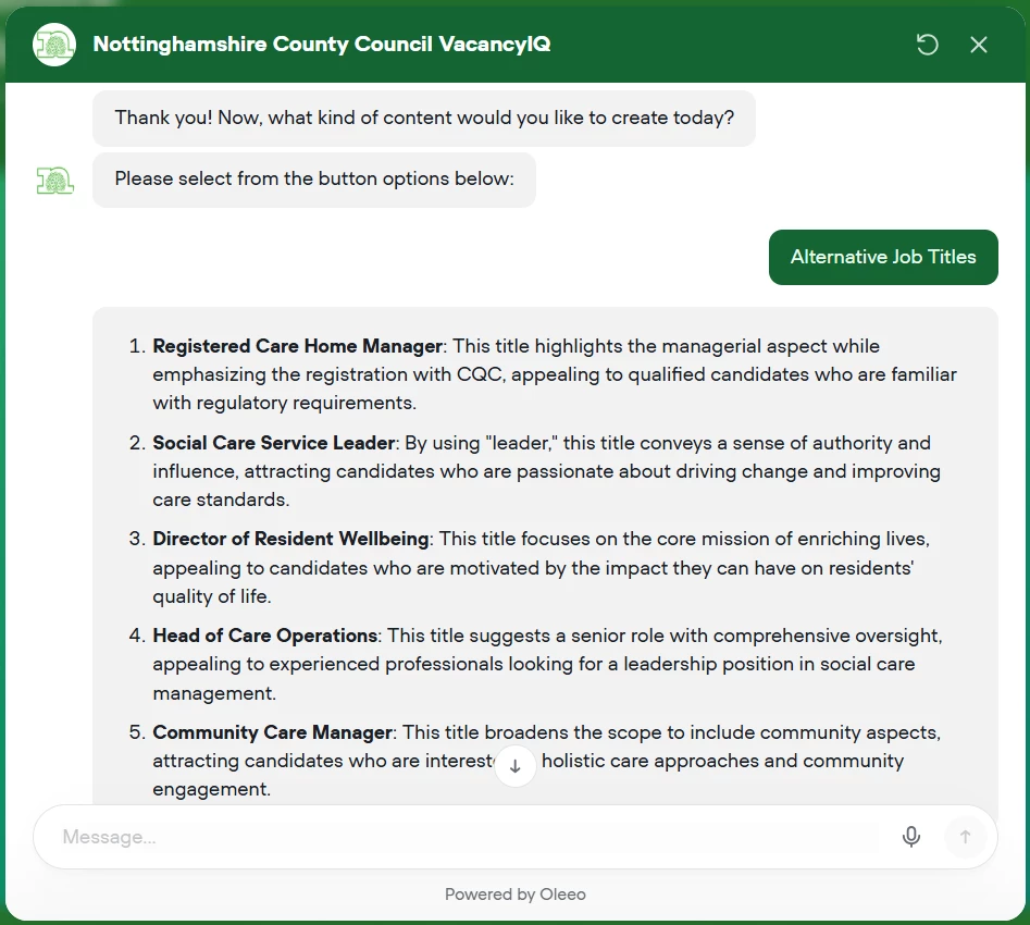 Authentic Content: Trained on your organisation’s past successful vacancies to learn your brand’s tone of voice and industry terminology.