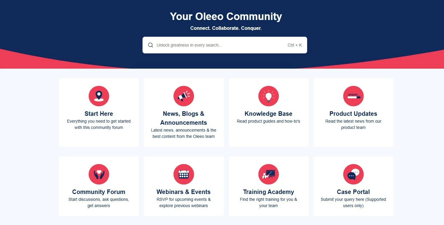 💡Our Oleeo Community - The place to be for all things Oleeo! We have made a single “go to” for all of your most common needs including: The Knowledge Base, Product Updates, links to upcoming Webinars and a whole host of how to guides and watch at leisure video content.