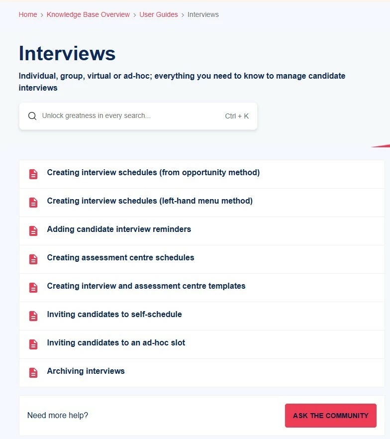🔧 Use case: You have a member of the team who does not regularly set up interview slots, our Knowledge Base has a User Guide for just this purpose, step by step guides allow them to build those slots with confidence.