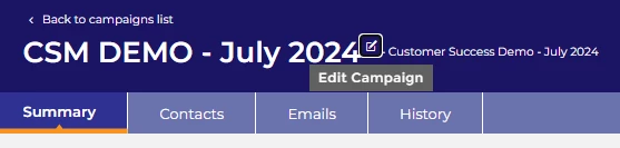 Update existing campaigns by editing their settings using the pencil in a box icon next to the campaign name when you are in the campaign builder itself