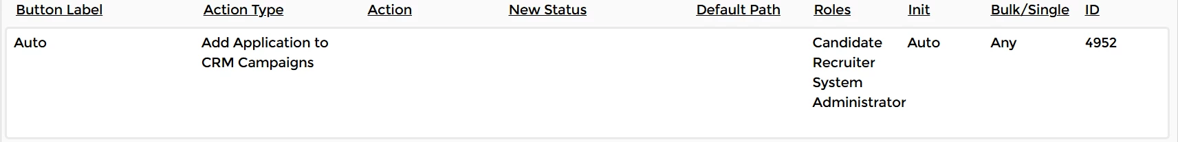 IMPORTANT: The process actions will manage at which statuses candidates are added and removed from the CRM campaign. Best practice therefore is NOT to use the saved search to remove candidates at the ‘withdrawn’ statuses, but to add the removal process action against all the relevant statuses in the process flow for where you would like the candidate to come out of their CRM campaign.