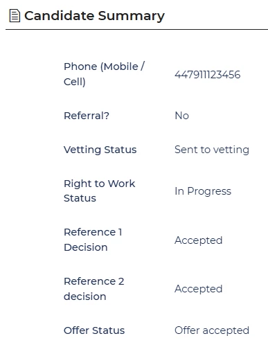 🔧 Use case: I’m managing a campaign with hundreds of applicants, each needing pre-employment checks like vetting, references, and Right to Work checks. Instead of opening multiple forms or searching through history, the Candidate Summary shows me the status of each check straight away. This means I can quickly identify who is ready to move forward and who still has actions outstanding – saving time and keeping the campaign on track.