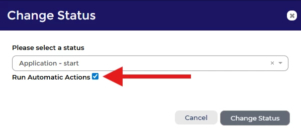 ⚠️ IMPORTANT: When using this tool, you will have the option to select ‘Run Automatic Actions’. Most of the time you will need to make sure that this is ticked to ensure background triggers are activated. If this is forgotten, then hidden potentially important actions will not run.